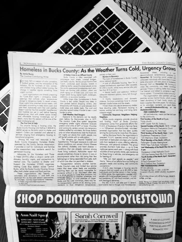 A call for us to look at the growing homelessness crisis in Bucks County and the urgent community response as winter approaches.